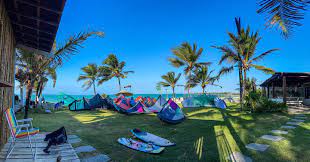 Área ampla com gramado perfeito para preparar os equipamentos de kite, wind ou wing, chuveirão e um bom espaço para relaxar e curtir a praia com toda a comodidade e tranquilidade.