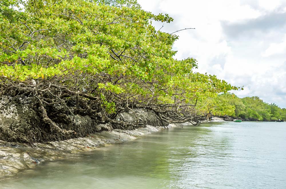 A viagem inclui uma exploração da região de mangue que bordeja o Rio Aracatiaçu, culminando na passagem por um túnel formado por árvores com raízes aéreas, criando uma paisagem de tirar o fôlego que se estende por suas águas verde-esmeralda. Neste momento, os motores das embarcações são desligados, permitindo-nos apreciar a tranquilidade e a beleza da natureza preservada por alguns instantes.